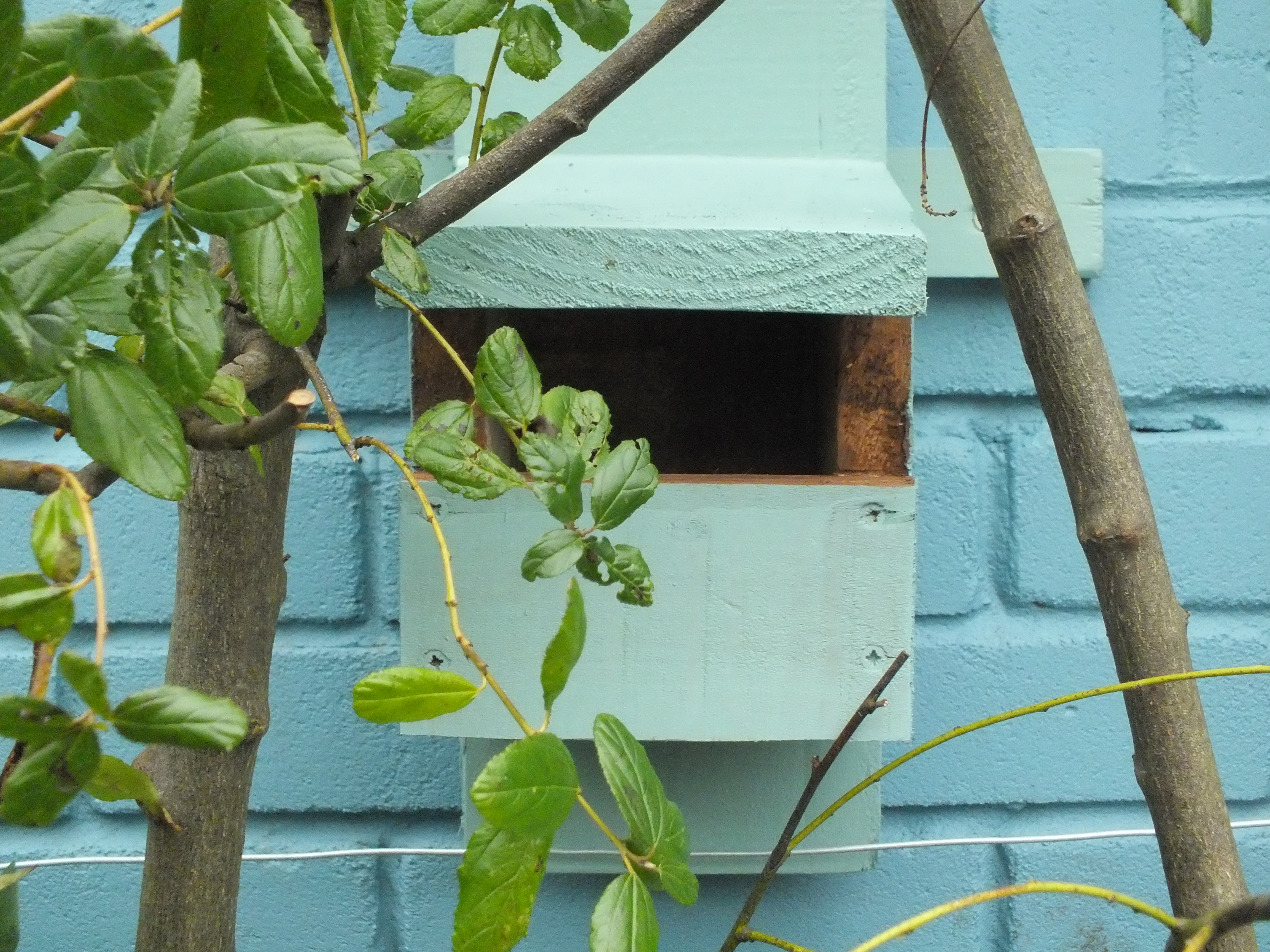 My garden is small so that there is only room for a couple of bird nest boxes. I’ve put an open-fronted box [photo] for robins in a North-facing position on the rear garden wall along with a nearby box [photo] for blue/coal tits. I hope that the robins don’t get too territorial and also that nest boxes will be out of reach of patrolling cats and squirrels, although fledglings will be at great risk wherever the nest boxes are fixed. As the climbing plants mature the likely spots for nesting will increase, so with any luck other birds may build nests regardless of any boxes I provide.